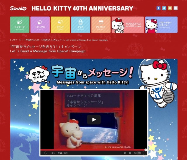 今秋、サンリオの人気キャラクター「ハローキティ」が、誕生40周年を迎える。世界中に多くのファンを持つ、日本生まれのキティさんは、現在、衛星に乗り込み、地球からのメッセージを待っている。