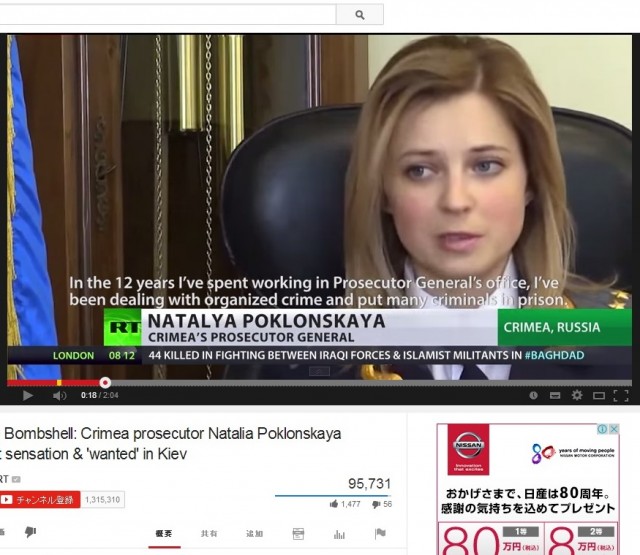 ロシアのニュース専門局ロシア・トゥデイは、美人すぎる検事総長として一躍有名になったポクロンスカヤさんも、今回の日本の制裁のブラックリストにアップされた、と伝えている。