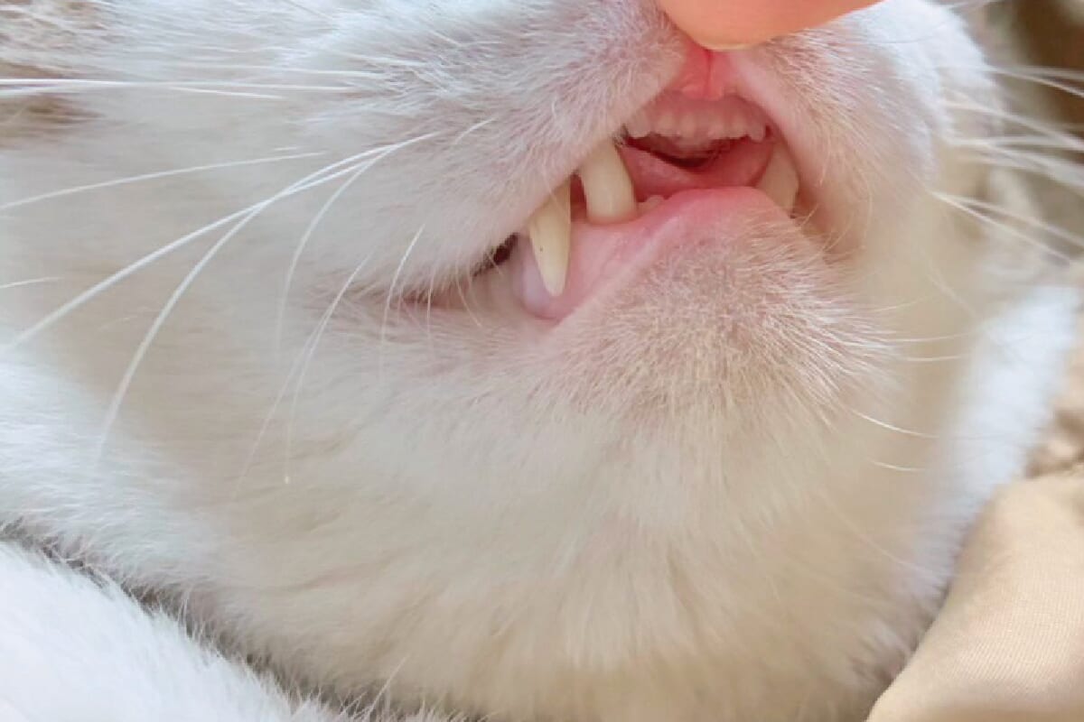 飼い主に鼻先を押された猫 見えた前歯に「この歯でしか得られない栄養」