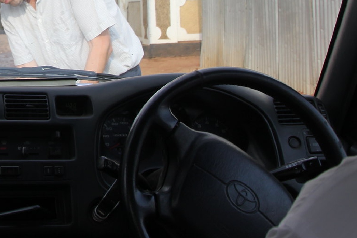 走行中にボンネットが開いていた車 修理していた1人の男性