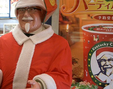 そして、1974年、ケンタッキーに第二の転機が訪れた。ジャパン・トゥデイによると、青山店を訪れた外国人の客の「クリスマスの七面鳥が手に入らない土地では、フライドチキンで代用する」という言葉を耳にした抜け目ないマネージャーの進言により、社をあげてのキャンペーンが始まったのだ。キャッチフレーズは今や日本人にはおなじみの、「クリスマスにはケンタッキー!」。