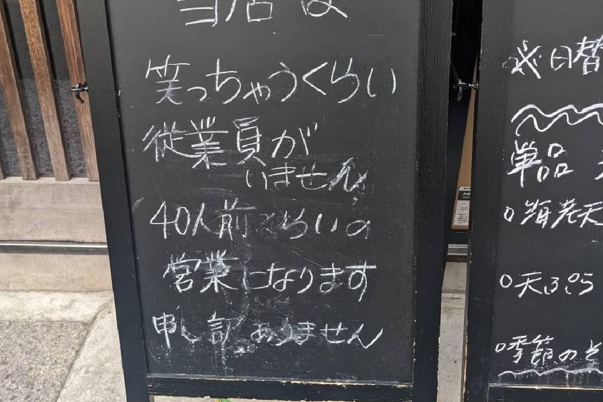 【画像】「思わず応援したくなる」飲食店が切実に看板に書いたお願い