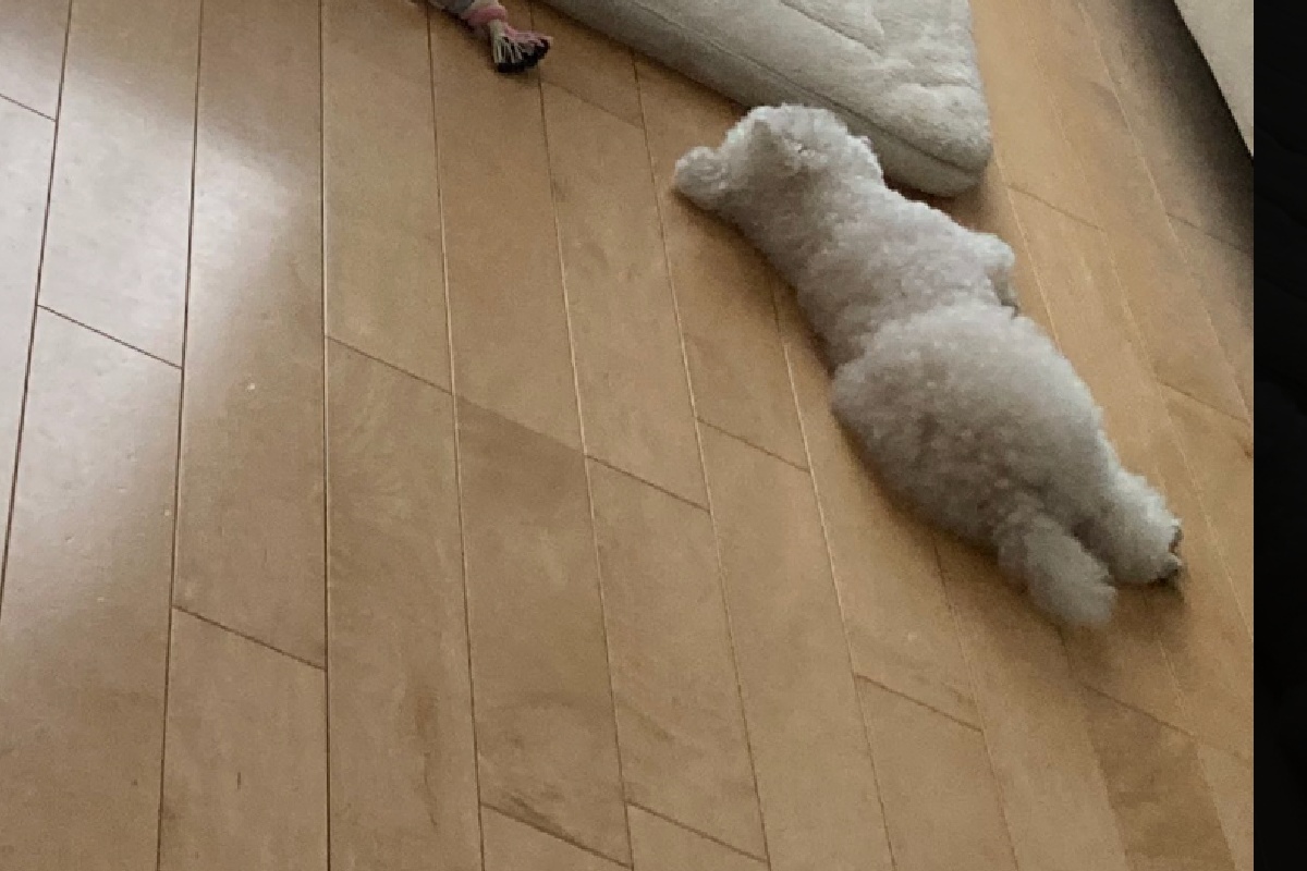 【画像】「可愛すぎる!」テトリスのように横たわる犬