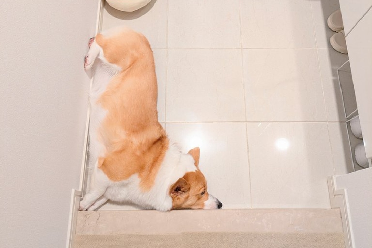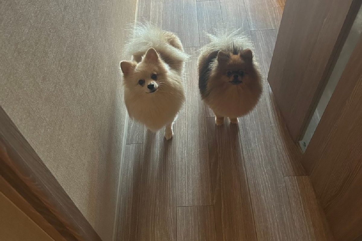 【画像】「待て、どこへ行く?」飼い主を見つめる愛犬