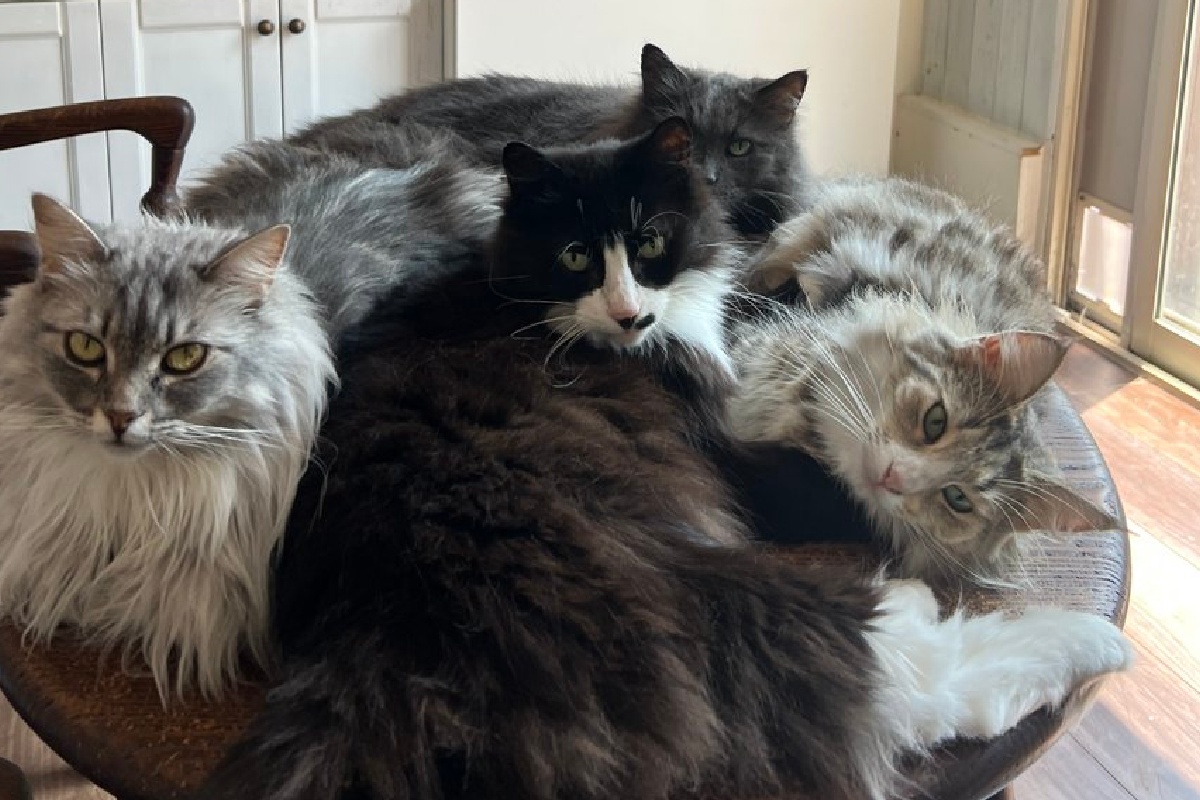 【画像】「暑いのに密集地帯だ」1箇所に集まって涼む猫