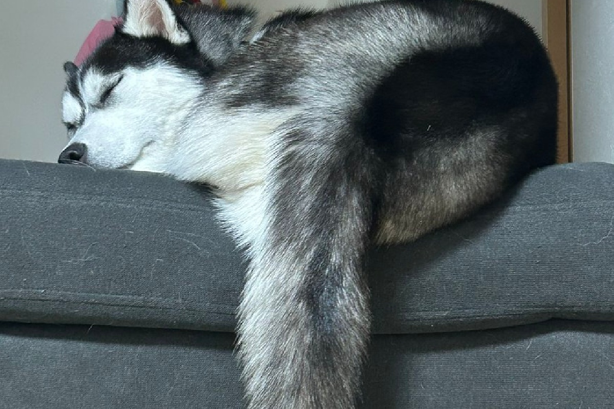 【画像】ソファから落ちたのに!? 寝続けるシベリアンハスキー