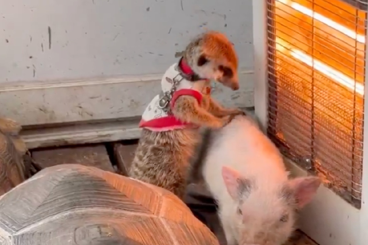 【動画】心も温かくなる…! ストーブの間に居座るミーアキャット
