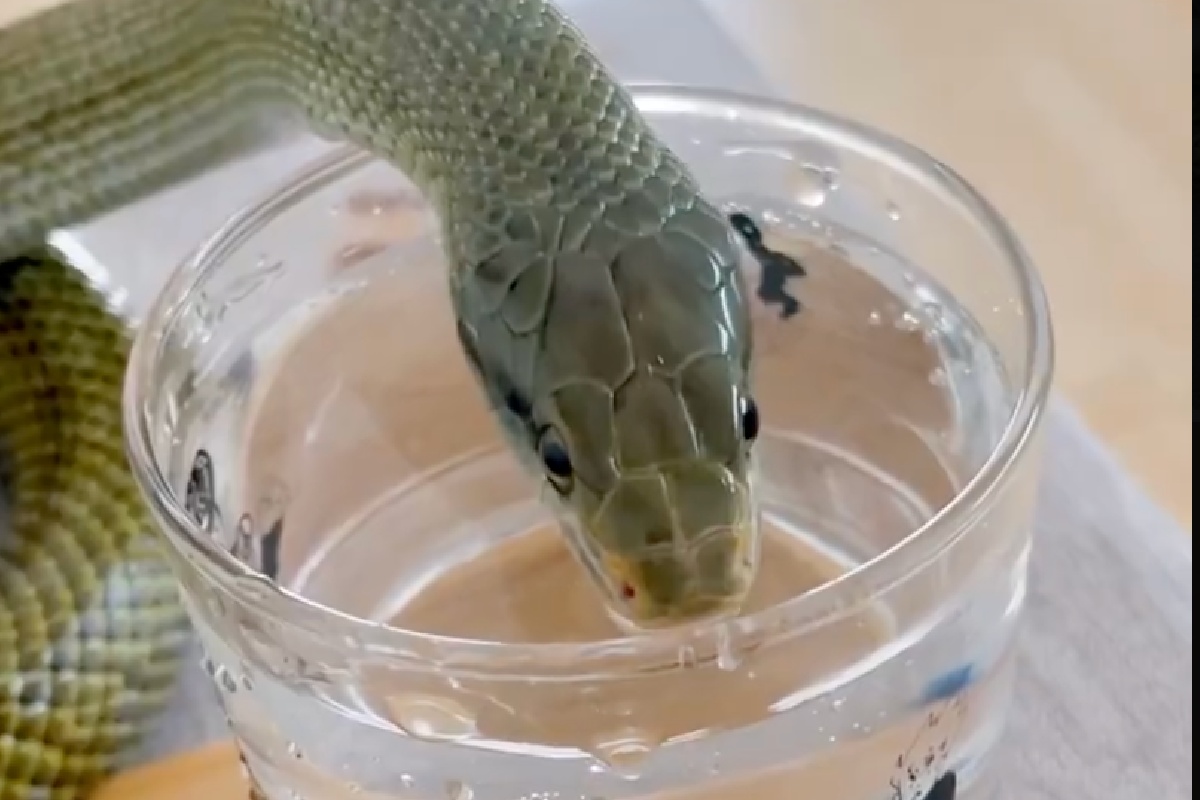【動画】「こんなふうに飲むんだ!」ヘビが水をチロチロ