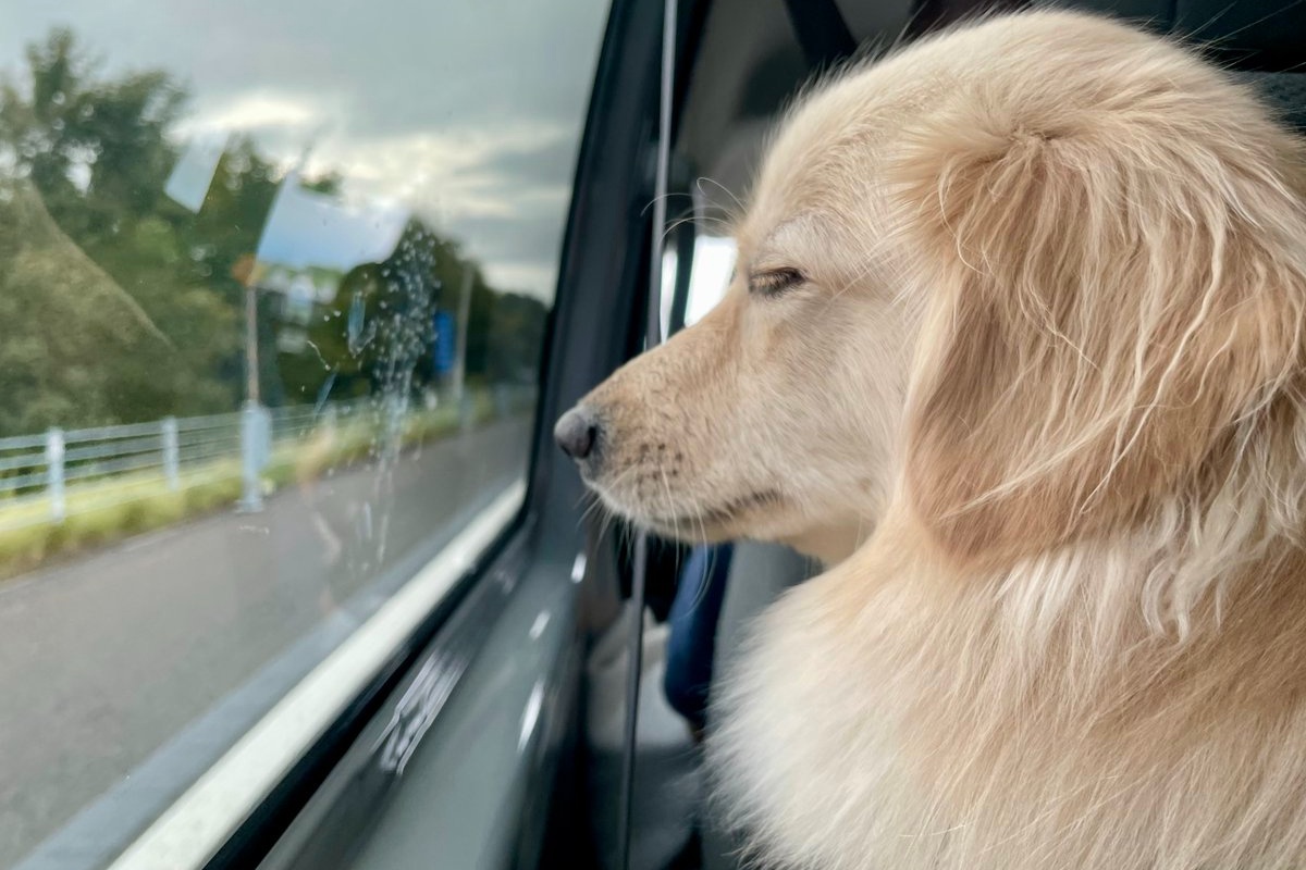 【画像】遊び疲れたんだろうな… お出かけ前と後の犬の表情