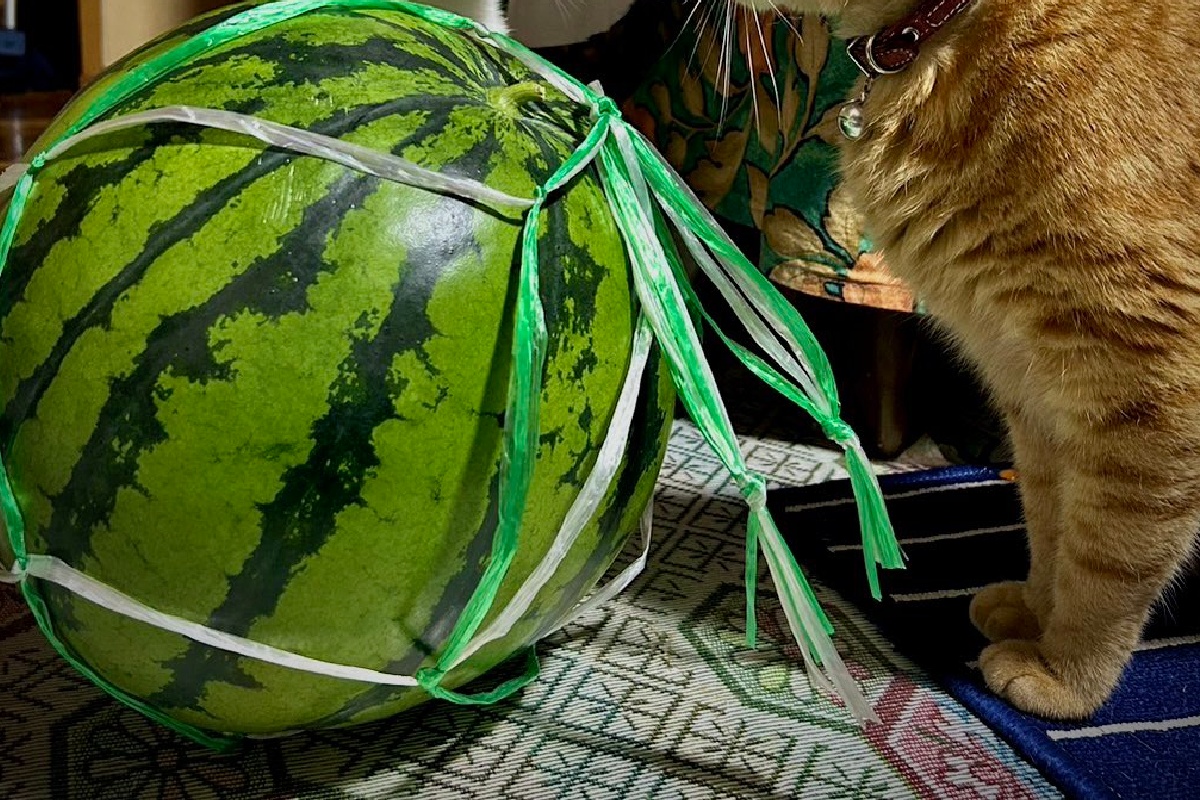「実家から猫がスイカで揉めてるっぽい写真送られてきた」 6万人が結末に興味津々!