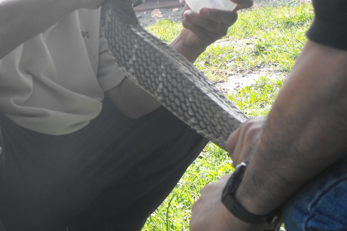 「捕獲した人が凄すぎる」 高校の近くで2m級巨大ヘビを発見