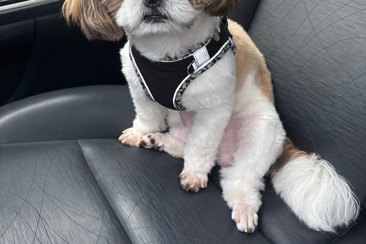 「この子は車酔いします」 車後部に設置された専用ケージ