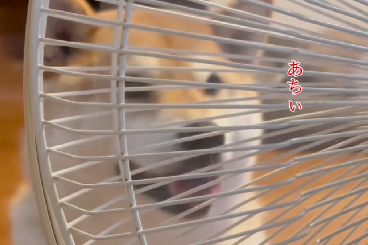 扇風機の前で口を開けて涼んでいた柴犬 展開に「面白すぎてクセになる!」