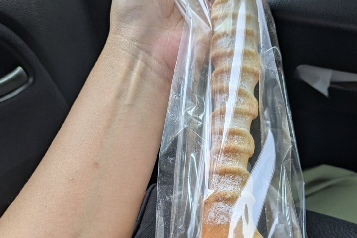 夫が買ってきた「なんだかよくわからないパン」 見た目に「ツチノコかと思った!」