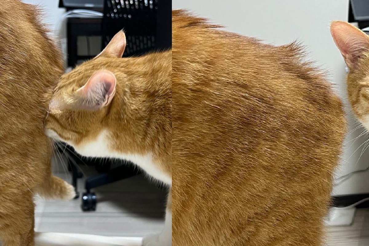 仲間のお尻を嗅いだ猫が? 7万人が「誰も頼んでいないのに自爆してる」と感じた反応