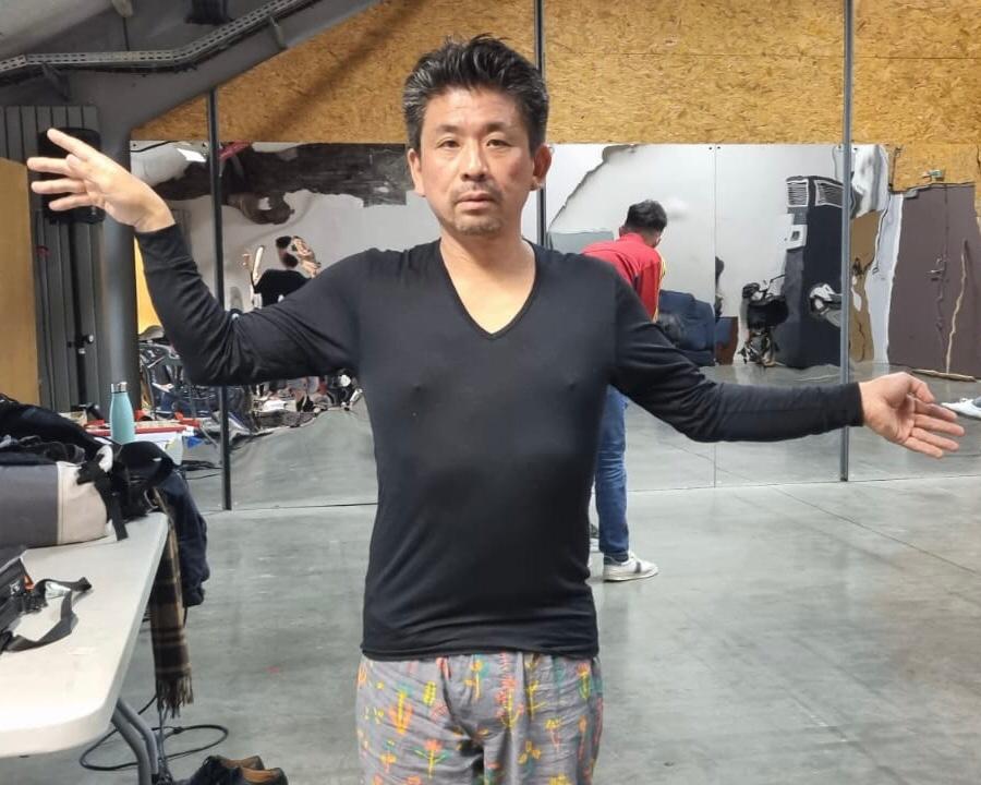 能のワークショップで松の所作を研究する酒井淳|本人提供