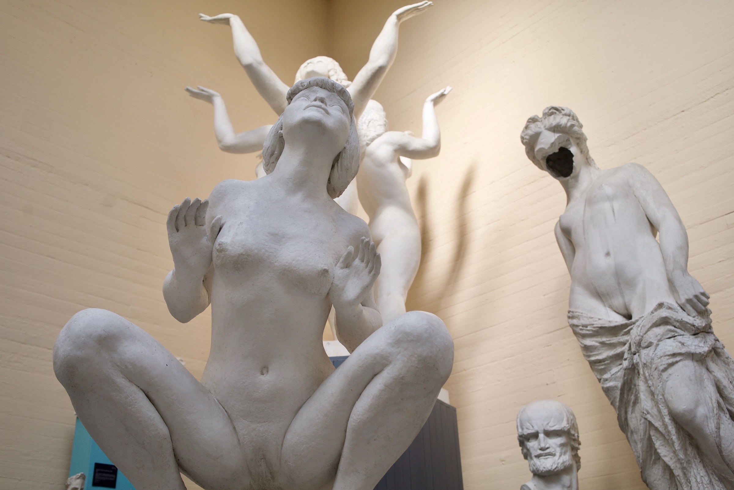 若かりし頃にギリシャやイタリアを旅したというルドルフは、ミケランジェロの作品に影響を受けた。彫刻に近づいて行くと、そこから感情の波が伝わって来るような躍動感がある。