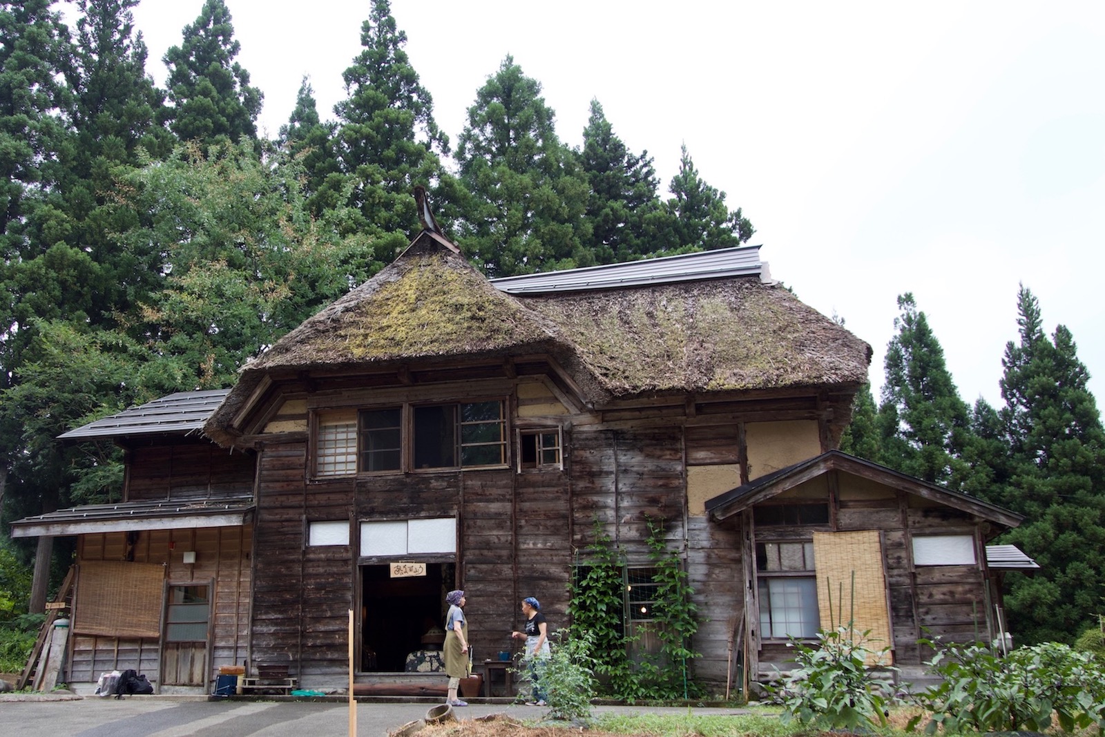 初日にランチを食べに行った “うぶすなの家” は、2004年の中越地震の際に市内でもっとも大きな被害を受けた地域にある古民家ギャラリー兼レストランだ。地震によって至る所が傾いてしまったこの家は空き家となり、その空家を「地域そのものの表現」として再生し活気を取り戻すために企画された、第3回大地の芸術祭の空き家プロジェクトによって “うぶすなの家” として再生された。家の中自体が作品となっており、日本を代表する陶芸家たちが手掛けた囲炉裏、かまど、洗面台、風呂、2階には3つの茶室からなる部屋に焼き物が展示されてある。ところどころ傾いたままの柱などもそのままにされてある。