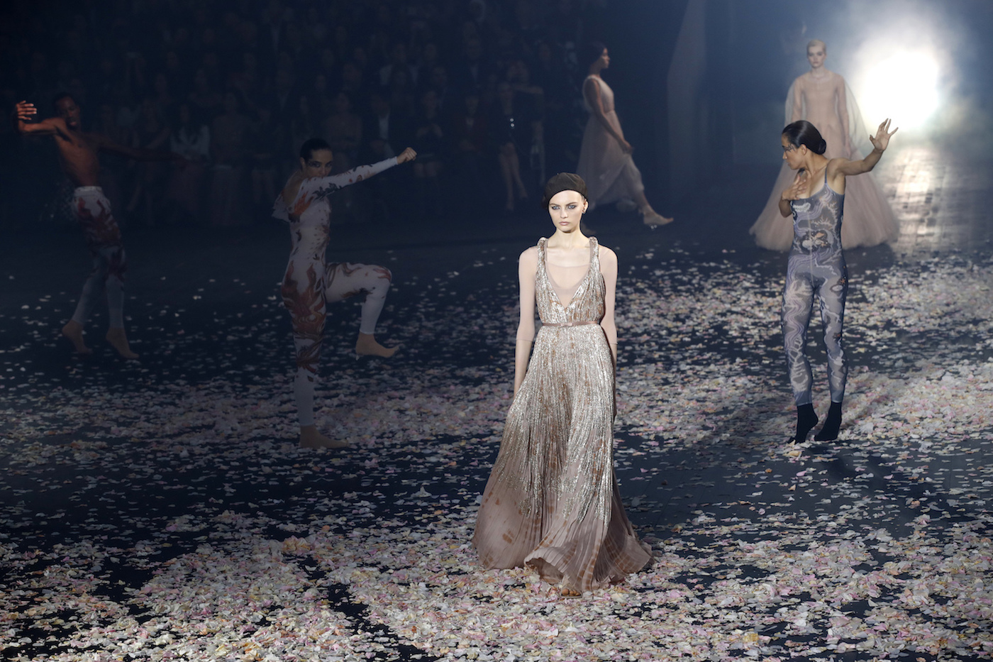 The runway hall was spacious enough to house the dozen roving dancers thanks to a marquee constructed in the grounds of the historic Longchamps racecourse, which dates to the 19th century and has been the site of some of former Dior designer John Galliano’s most memorable couture shows.