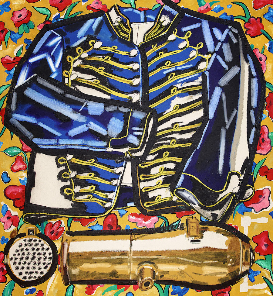 Instead of just updating the style or approach and calling that a new theme, for example if you look at things askew, there are many styles ranging from abstract paintings, figurative—the expression here is about what would happen if you take motifs that are illustrated in contrasting ways but put them all in one frame. Of course, something like this has already been done in the 60s by artists like Andy Warhol.
