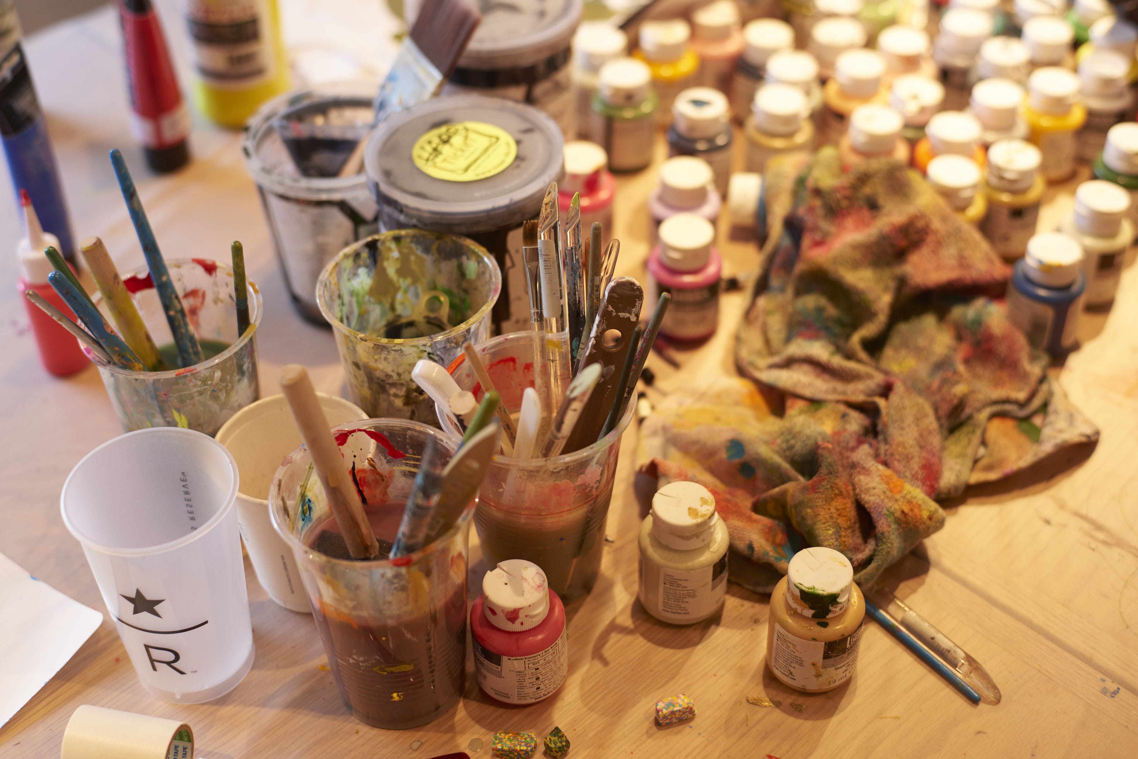 例えば、スタジオの床も壁もガンガンに汚して良いということなら、もっともっと、色、入っていますよ。でも「汚しちゃいけない」みたいなことが、どうやらここにいると無意識に出ちゃうらしいんです(笑)