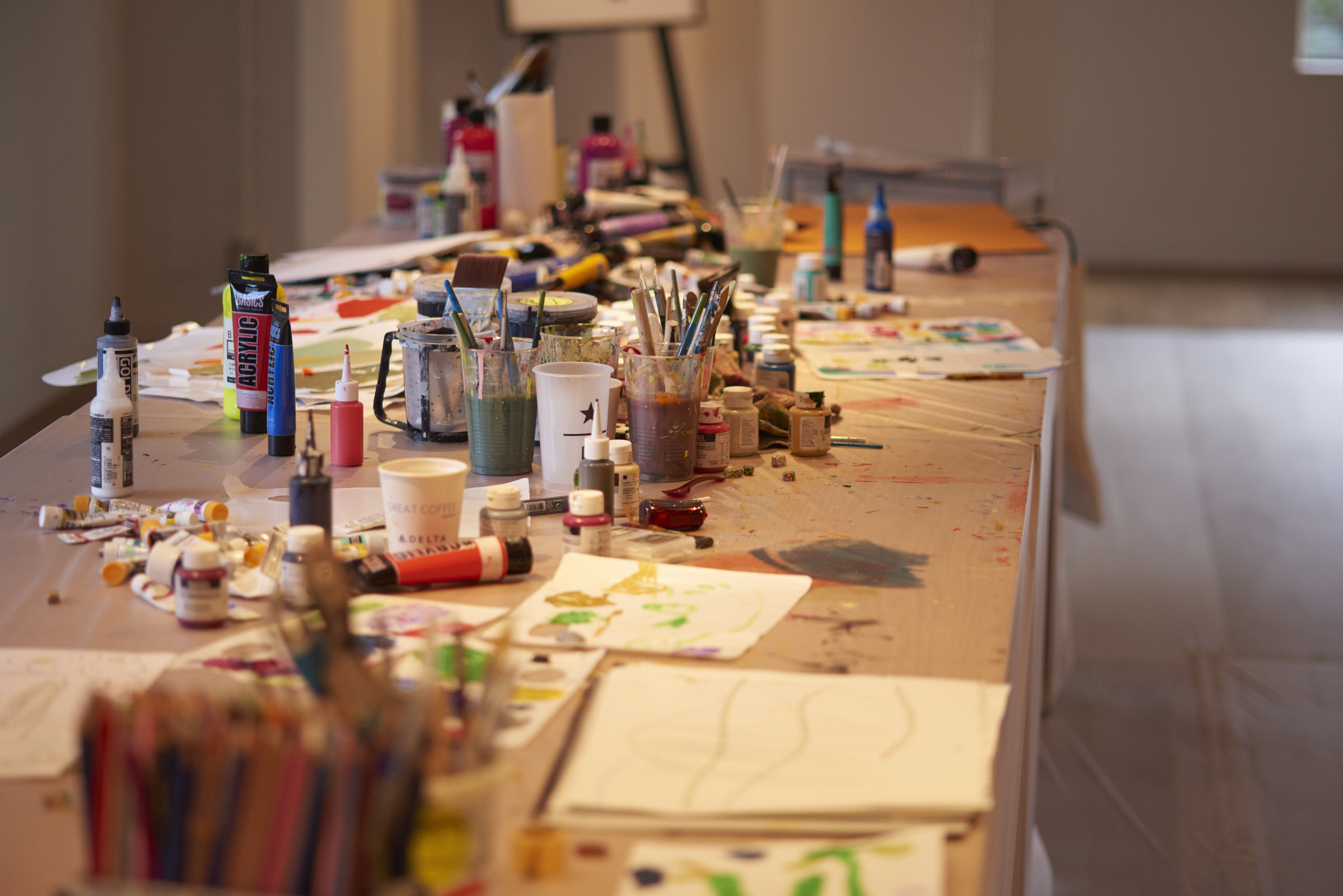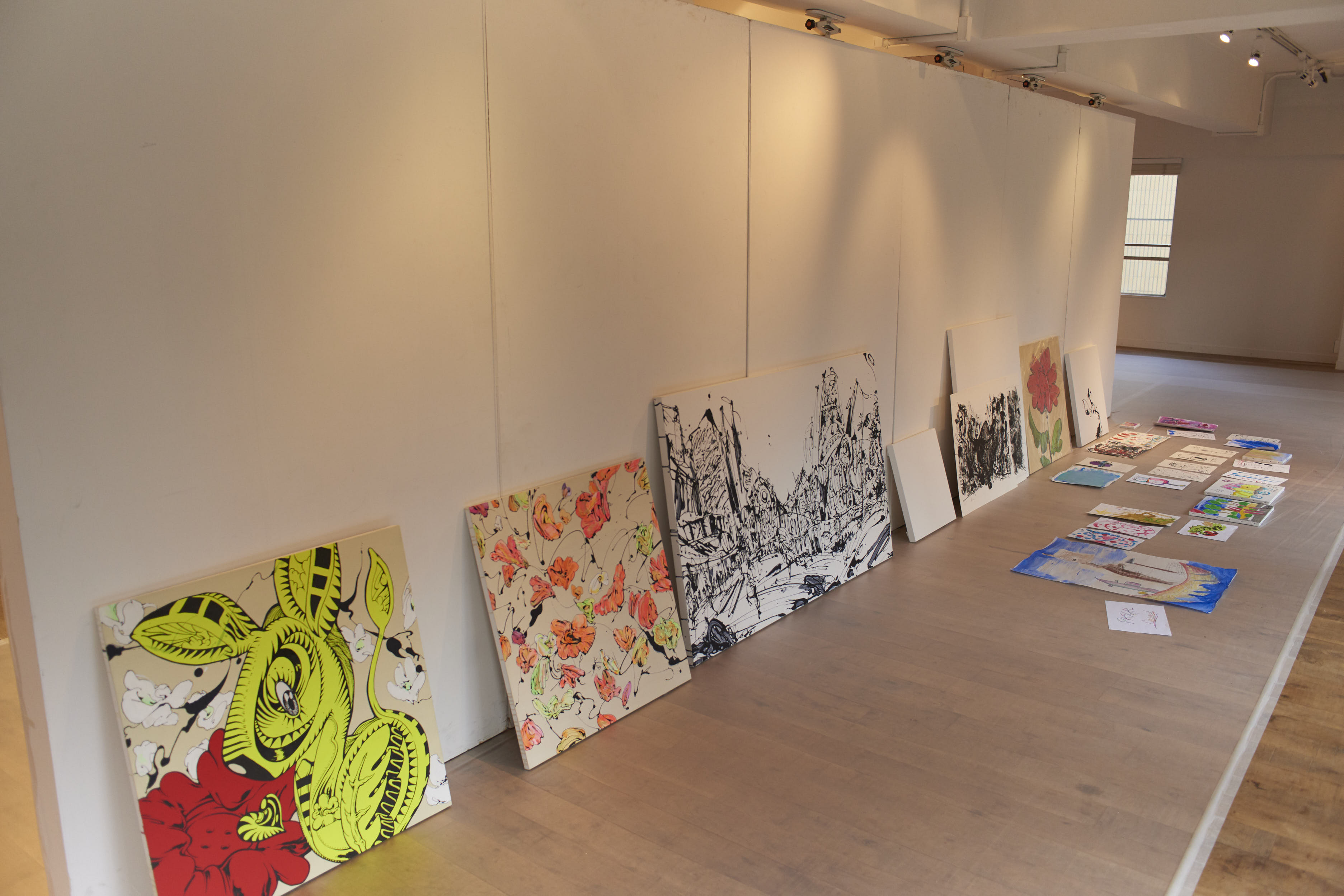 SHUN SUDO:思っていたよりたくさん子供たちが遊びに来てくれました。スタジオには、みんなで絵を描ける様にスケッチブック、キャンバス、絵の具、クレヨン、色鉛筆などを用意したのですが、良かったのは、真っ白な紙に何の迷いもなく描く姿を見せてもらったこと。頭で考えてないですよね。すごく勢いがあって。「ああ、こういうことだよな、絵を描くって」と、とても新鮮な気持ちになりました。