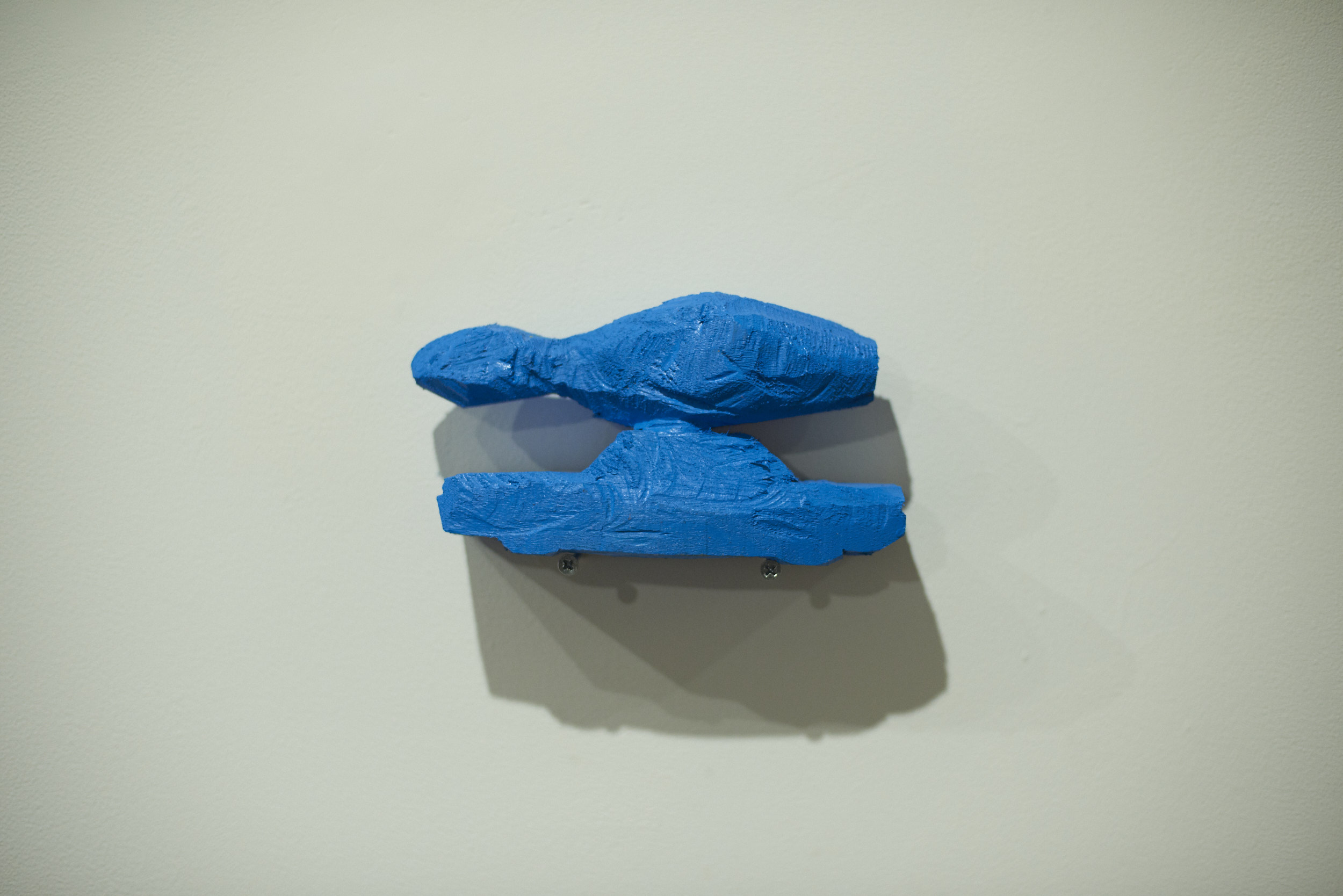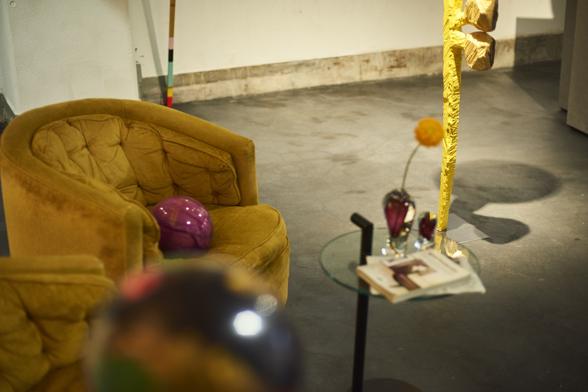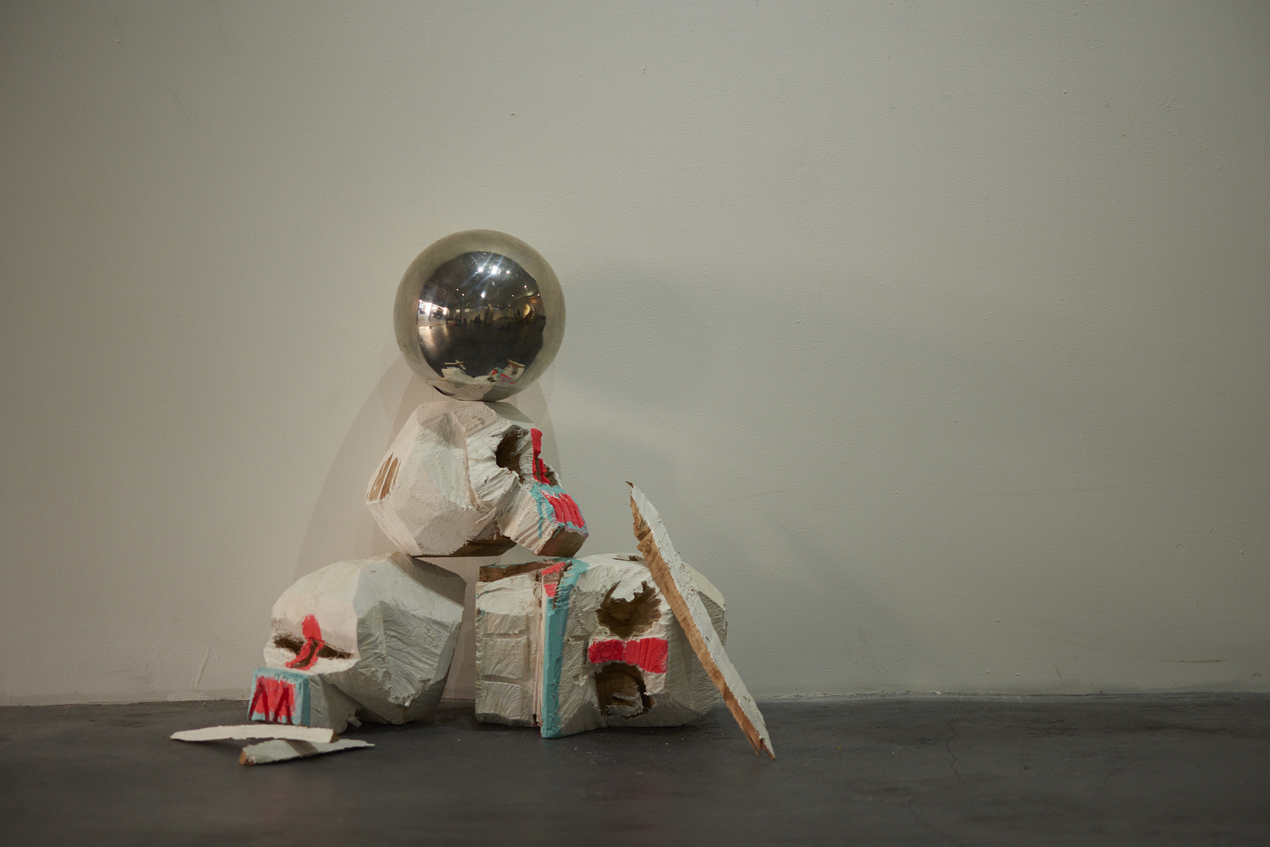 はい。「ボウリングピン」も、こういうサイズの棒を買ってきて塗ったわけではなくて(笑)丸太からチェンソーで切り出しています。他の木彫も、彫刻刀などは使用せず、全部チェンソーで作った作品です。今回は時間をかけて一つの完成度をあげるというより、自分のイメージしているものを現実化して、それを繋げるということに集中しました。あまり考えすぎると想像以上にならないので、作っている時も最終イメージを決めないでやりました。