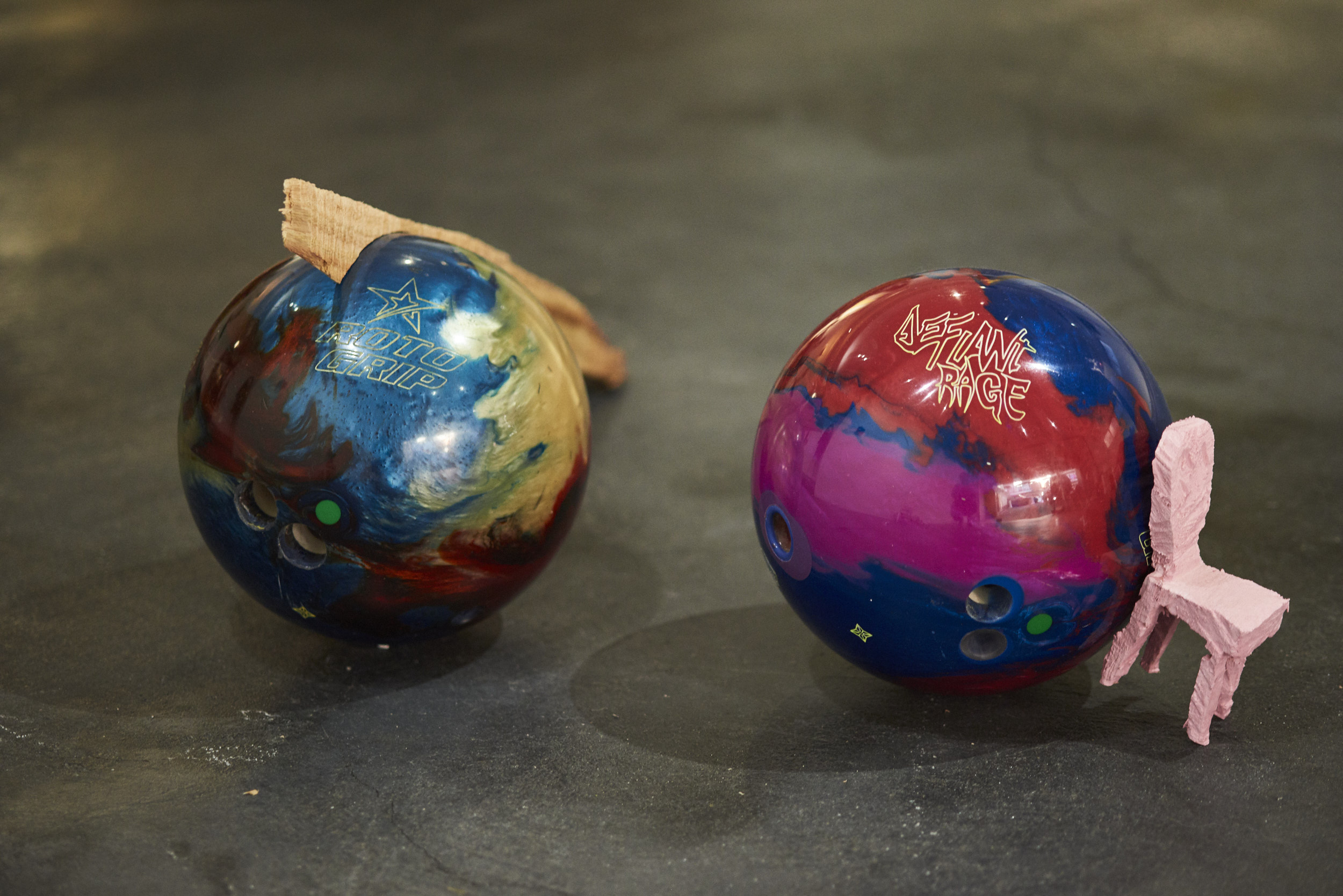 ボウリングに興味ないのですが(笑)でもボウリングの玉は好きなんです。柄も多いし、サイズもちょうど良いんですよね。重さも大きさも人間の頭に近くて。人間の頭や顔って我々がみている一番身近な玉ですよね。