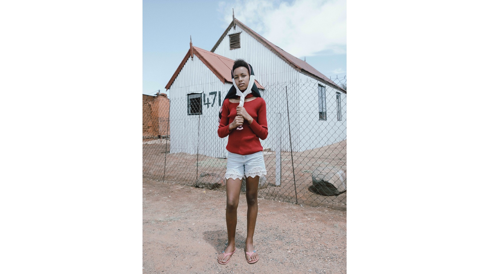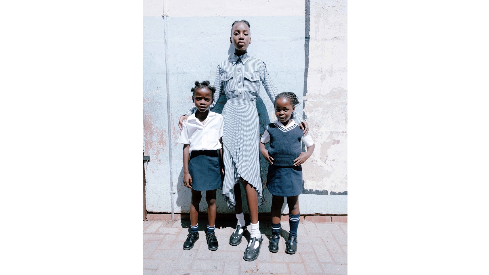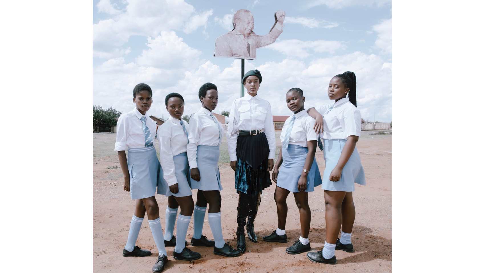一方、「写真展」で発信されるのは、過去と記憶の物語だけではない。多くの写真に子どもや制服姿の学生たち、そして学校が登場する。これはマググの教育に対する想いと、子どもたちの夢になぞらえた未来への想いが反映された結果だ。「Nelson’s Children(ネルソンの子どもたち)」と題された写真には、ネルソン・マンデラの肖像のもとに制服姿の女子学生が集合し、その中心には、学生服のイメージを想起させる「テベ・マググ」の服を身につけたモデルが佇む。アパルトヘイト終焉後26年が経過した現在も、タウンシップが抱える課題は少なくない。そのような中こそ、若者の未来と夢に目を向けるべきだというのが、マググのメッセージである。