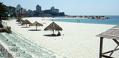 白浜海水浴場の白い砂は、オーストラリアから輸入されたものである。夏には露店や花火で賑わう。また、この記事の著者は、亜熱帯である沖縄以外の場所で、このようなビーチに出会うことが、いかに思いがけないことか、と驚いており、まるでカリブ海にいるかのように感じるとも述べている。