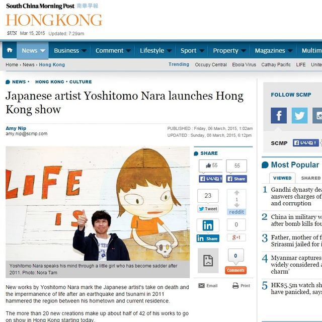 震災から四年、自身の父の死も経験した奈良氏の個展『Life is Only One』は、同氏が死に対して抱く深い感情が反映されている、と香港のサウス・チャイナ・モーニング・ポスト紙(SCMP)は指摘している。