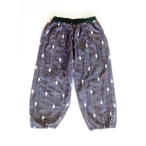 同社の展開する「もんぱん」は、1957年に国の重要無形文化財に指定された久留米絣(くるめがすり)を用いて作られており、かつデザイン性の高い柄模様やウエスト部分の鮮やかな色がポップで。伝統とモダンが絶妙に融合されている。