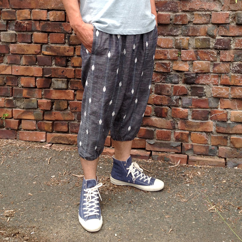 例えば、絣(かすり)の心地よさを生かした新感覚のパンツ、ギエモンの「もんぱん/本絣」だ。もんぱんとは、“もんぺ”と“ショートパンツ”を組み合わせた造語だ。もともとは、もんぺを切って短パンとして履いていたことをきっかけに、試行錯誤の末今のデザインに辿り着いたのだという。