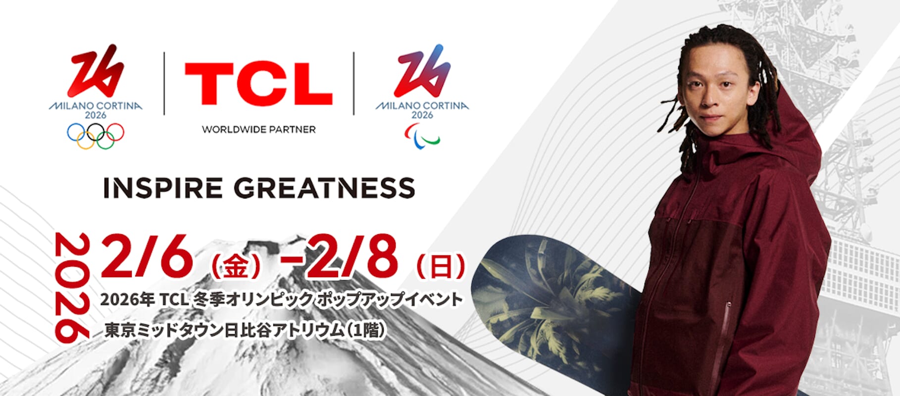 TCL JAPAN ELECTRONICSは、2026年2月6日(金)から2月8日(日)までの3日間、東京ミッドタウン日比谷アトリウムにて、ミラノ・コルティナ2026オリンピック・パラリンピック冬季競技大会の世界観を体感できる体験型イベント「2026年 TCL 冬季オリンピック ポップアップイベント(東京)」を開催した。