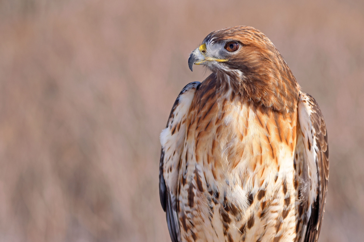 名前の由来となった赤褐色の尾羽が特徴で、個体によって体色の濃淡や斑の入り方に変化が見られる。森林、草原、農地、市街地周辺など幅広い環境に適応し、道路沿いや電柱、木の枝など高い場所にとまって獲物を探す姿がよく見られる。主な食性はネズミやウサギなどの小型哺乳類で、ヘビやカエル、鳥類を捕食することもある。