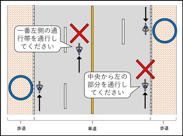 C. 自転車専用通行帯を走る