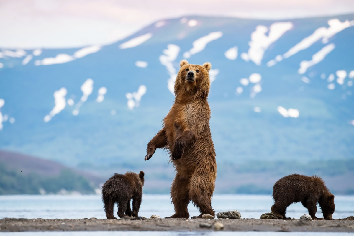 カムチャツカヒグマはロシア極東のカムチャツカ半島を中心に生息するヒグマの亜種で、コディアックヒグマと並ぶ巨大な体格を持つ。サケ資源が豊富な地域に適応しており、筋肉量が多く、成獣は非常に力強い。雑食性だが魚類への依存度が高く、河川沿いで活動する姿が多く見られる。人間の生活圏と重なる地域は限られているものの、個体数が比較的多く、縄張り意識も強いため、遭遇時の緊張度は高い。視界の悪い森林や河川付近では、突然の接近が深刻な事態を招く可能性がある。