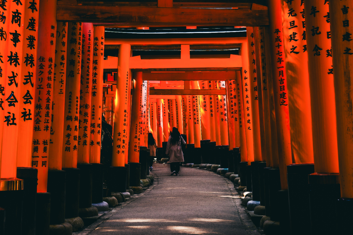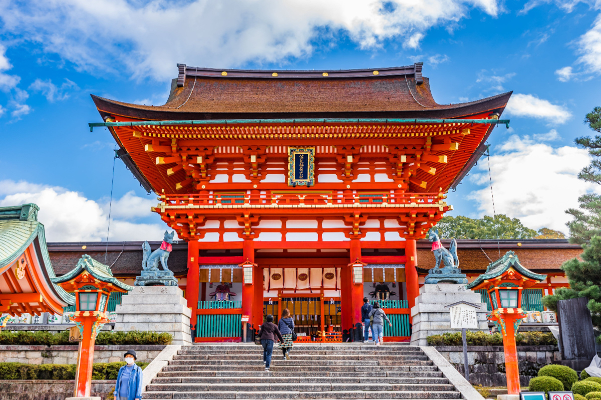 伏見稲荷大社は、京都南部にある稲荷信仰の総本社で、商売繁盛や五穀豊穣の神として知られる。参道から稲荷山へと続く千本鳥居が象徴で、無数の朱色の鳥居は企業や個人の奉納によるものだ。