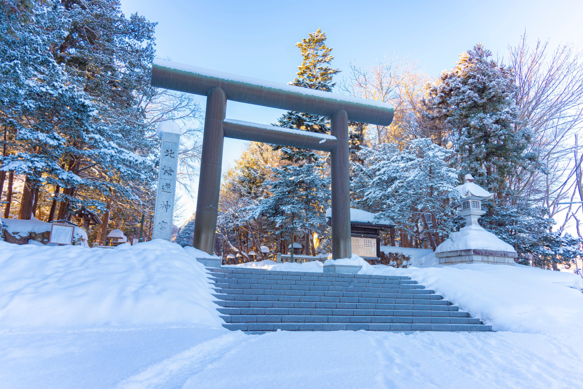 北海道神宮は、札幌市中央区の円山公園に隣接する道内の代表的な神社で、開拓三神と明治天皇を祀る。参道は玉砂利の長いアプローチが続き、社殿は檜皮葺風の落ち着いた意匠だ。境内は広く、季節ごとに桜、新緑、紅葉、雪景色が映える。