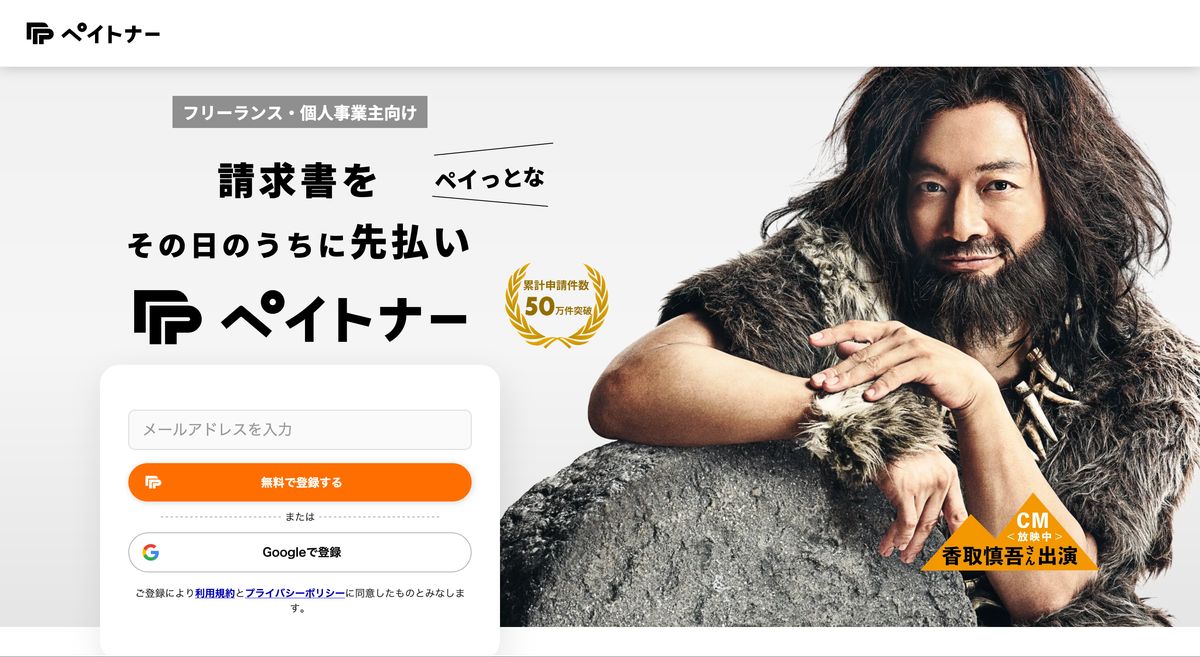 ペイトナーは、少額の資金調達を専門的に行っているファクタリングサービスです。申請可能金額の上限が100万円と他社に比べて低いものの、フリーランスや個人事業主のなかには「それだけあれば十分」と感じる方も多いでしょう。その分、手軽に利用できるよう工夫されており、小規模事業者から高い支持を得ています。