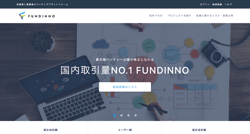 株式投資型クラウドファンディングとして2015年に日本で初めて開始したのが、FUNDINNOです。FUNDINNOは投資先企業へのフォローアップが厚く、株主コミュニティという、投資家と出資先、仲介業者を繋げる動きも取っています。株主コミュニティとは、日本国内の非上場株式を、特定の投資家に対して投資勧誘することを認める制度で、一般投資家による非上場株式の取引活性化を図ることで、非上場株式を発行する企業の取引・換金ニーズに応え、企業の資金調達方法の選択肢を増やすことを目的としています。一口10万円程度からの出資が一般的ですが、1万円から出資可能な案件もあります。