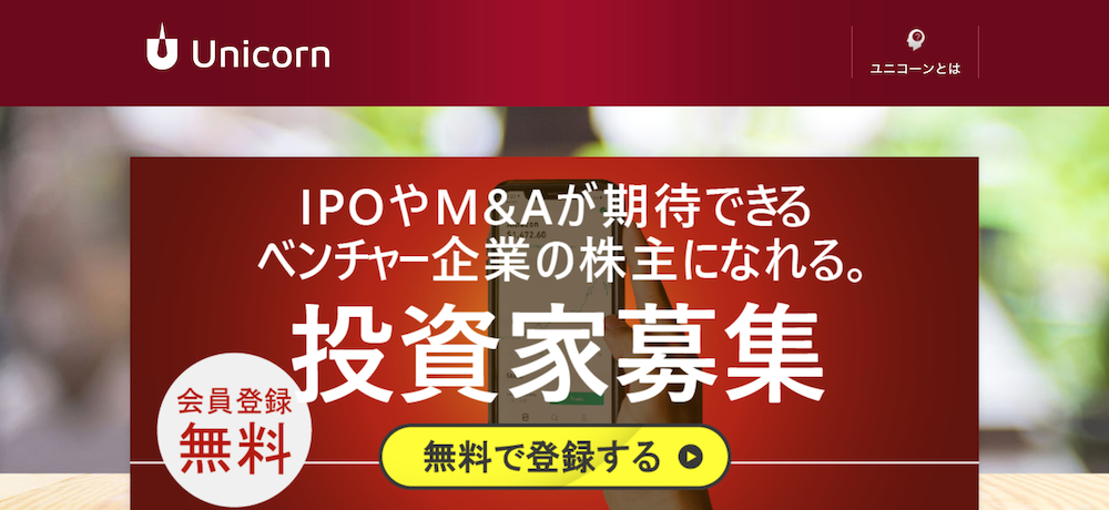 ユニコーンは2018年末に第一種少額電子募集取扱業者の認可を受けた新興の株式投資型クラウドファンディング仲介業者になります。スタートアップ企業への投資を専門として、投資先の起業家にフルサポートを行ってIPOまで導くという事業モデルになります。2019年5月末には佐賀県との締結が発表されました。