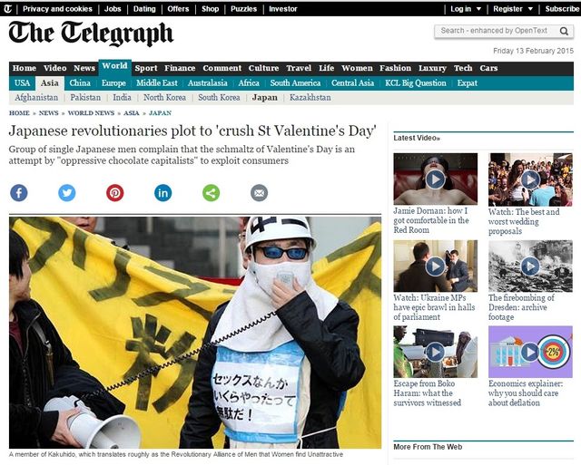 実際、英ガーディアン紙の記事には、商業主義化するバレンタインへの批判が展開される。同紙は、革非同の「街中でイチャつくのはテロ行為」という主張にはほとんどの人は賛同しないだろうが、バレンタイン・デーの過剰な商業主義への批判には共感が持たれるだろう、と述べる。