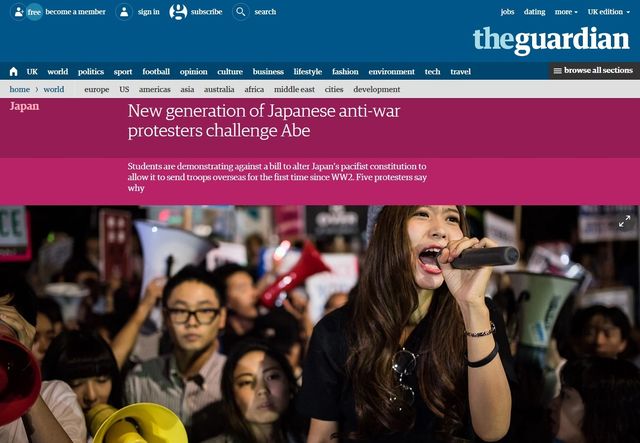 以上の英メディアでは、どちらかと言えばSEALDsの若者たちの意見をそのまま掲載するような論調が目立つ。また、安保法制化の前提として中国や北朝鮮の脅威を紹介する記事はあっても、日本の役割が拡大することを肯定的にとらえる保守派の意見を代弁する記事は少ない。先日アメリカ大統領選挙に関連して共和党代表指名争いでトップに立つドナルド・トランプ氏が、日米間の安全保障に触れて、日本が出動することがないことを指摘したうえで「不公平な条約」と批判したことについて、アメリカの支援者たちが賛同し場内が沸くシーンが日本でも報じられた。そうした一部でのムードに反し、多くの欧米メディアはなぜか左派寄りだと言ってもいいのかもしれない。こうした報道に反発した海外ユーザーたちから、各記事に批判的なコメントが寄せられているケースもあるようだ。