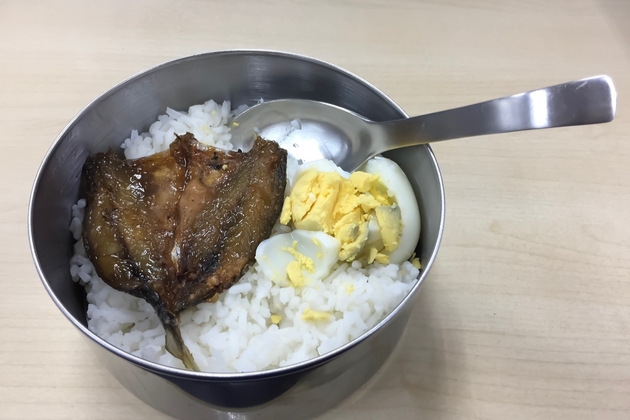 肉はどこにある?その定食には、野菜1種類と肉2種類があるはずなのに。米はほんの3口分あるだけ。私はフードカウンターで尋ねてみた。すると彼らが言うには、「野菜と肉は大鍋の調理なので、これが普通です。肉片が見えませんか?もっとお米が要るのなら、追加料金を払ってください。」私は農夫だが、街での経験もある。――この小さいのを肉と呼んでいいものか?