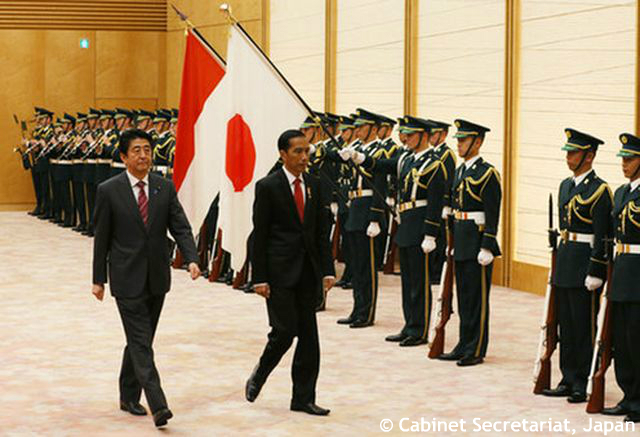 安倍首相とジョコ大統領は、会談後、「海洋と民主主義に支えられた戦略的パートナーシップの更なる強化に向けて」と題した共同声明を発表した。また首相は、夕食会のあいさつでは、「共にアジアを代表する海洋国家、民主国家」というキーワードで、両国のきずなを語っている。