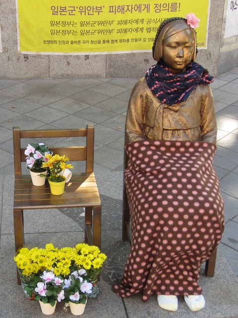 朝鮮日報は、慰安婦像に関して、『日本が「少女像」に神経質になる本当の理由とは』と題した記者コラムを掲載した。筆者のクァク・アラム記者は、像を制作した彫刻家夫妻の「元慰安婦のおばあさんたちに対する共感を引き出すよう祈りながら像を作った。2011年12月に現在の位置に像を置き、日本から心のこもった謝罪を受けるという願いを込めて拝んだ」というコメントを紹介。「少女像はもはや作品ではなかった。元慰安婦のおばあさん自身と考えられていた」と、像に寄せる市民の思いを代弁する。