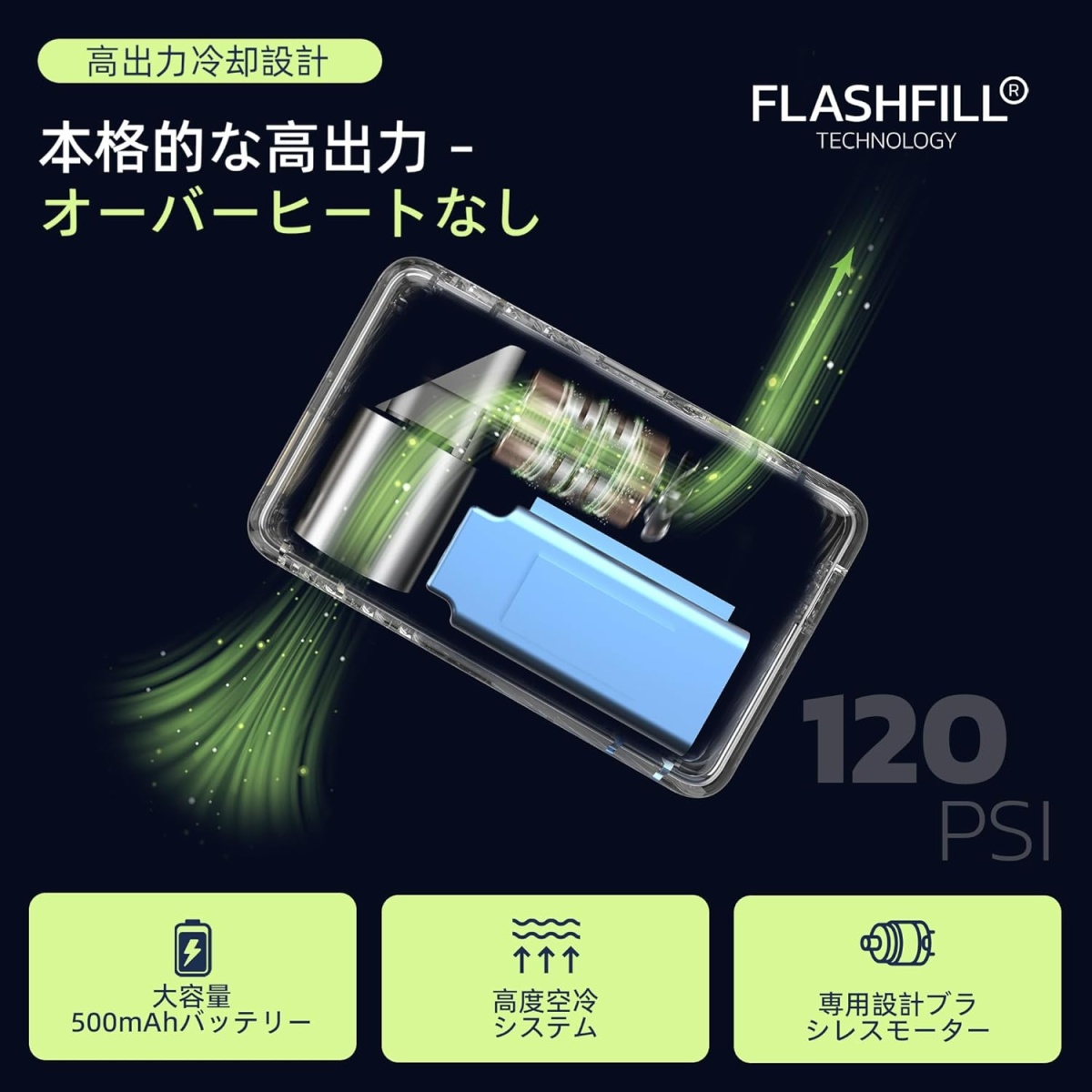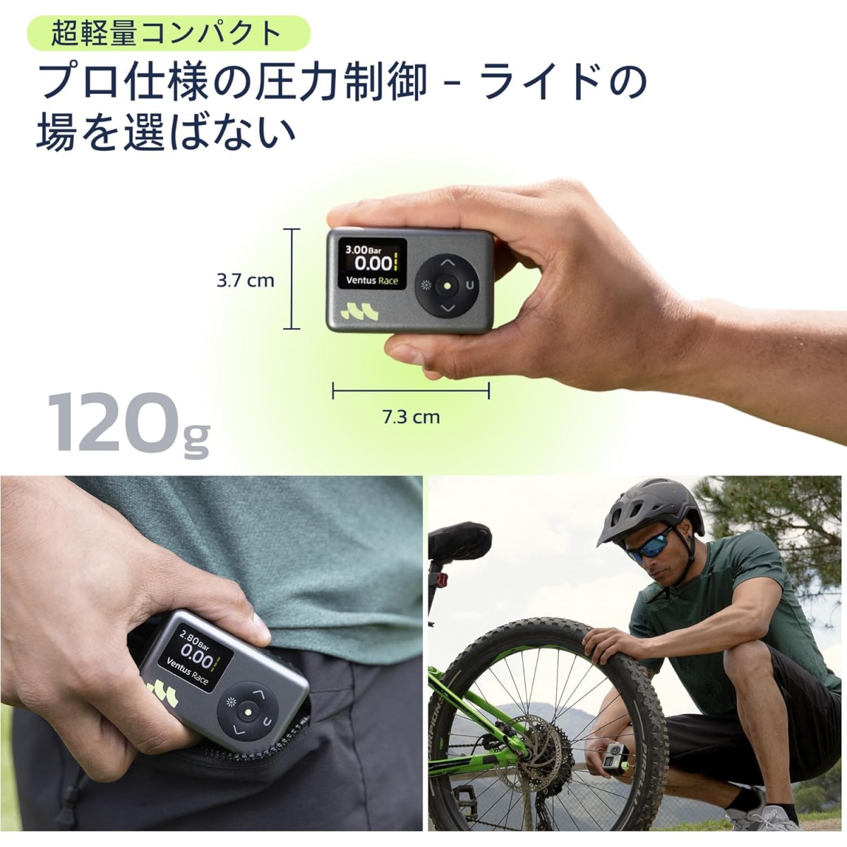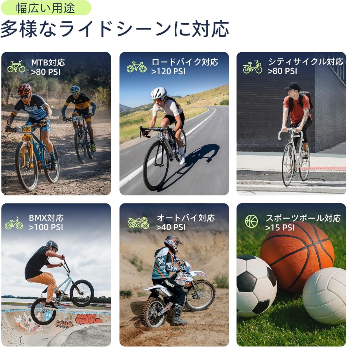 それでいて最大120PSIまで対応しているので、ロードバイク用のタイヤもしっかり対応できます。