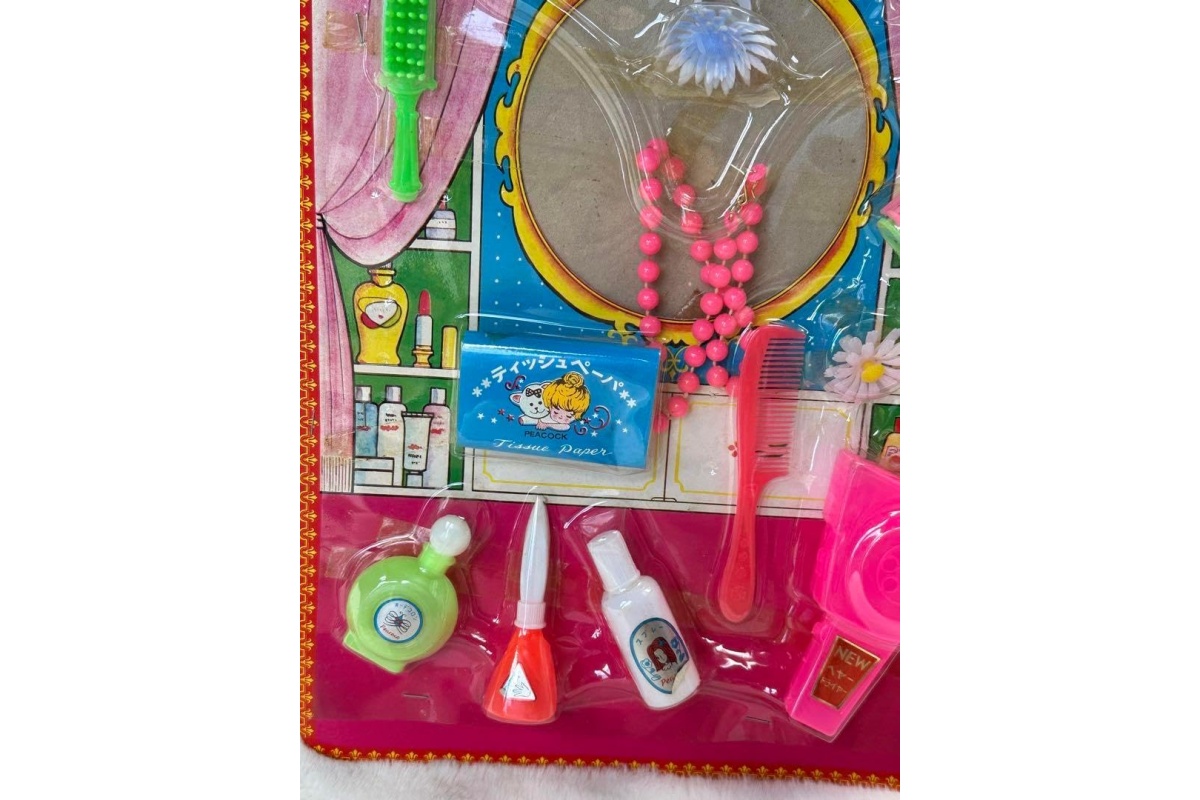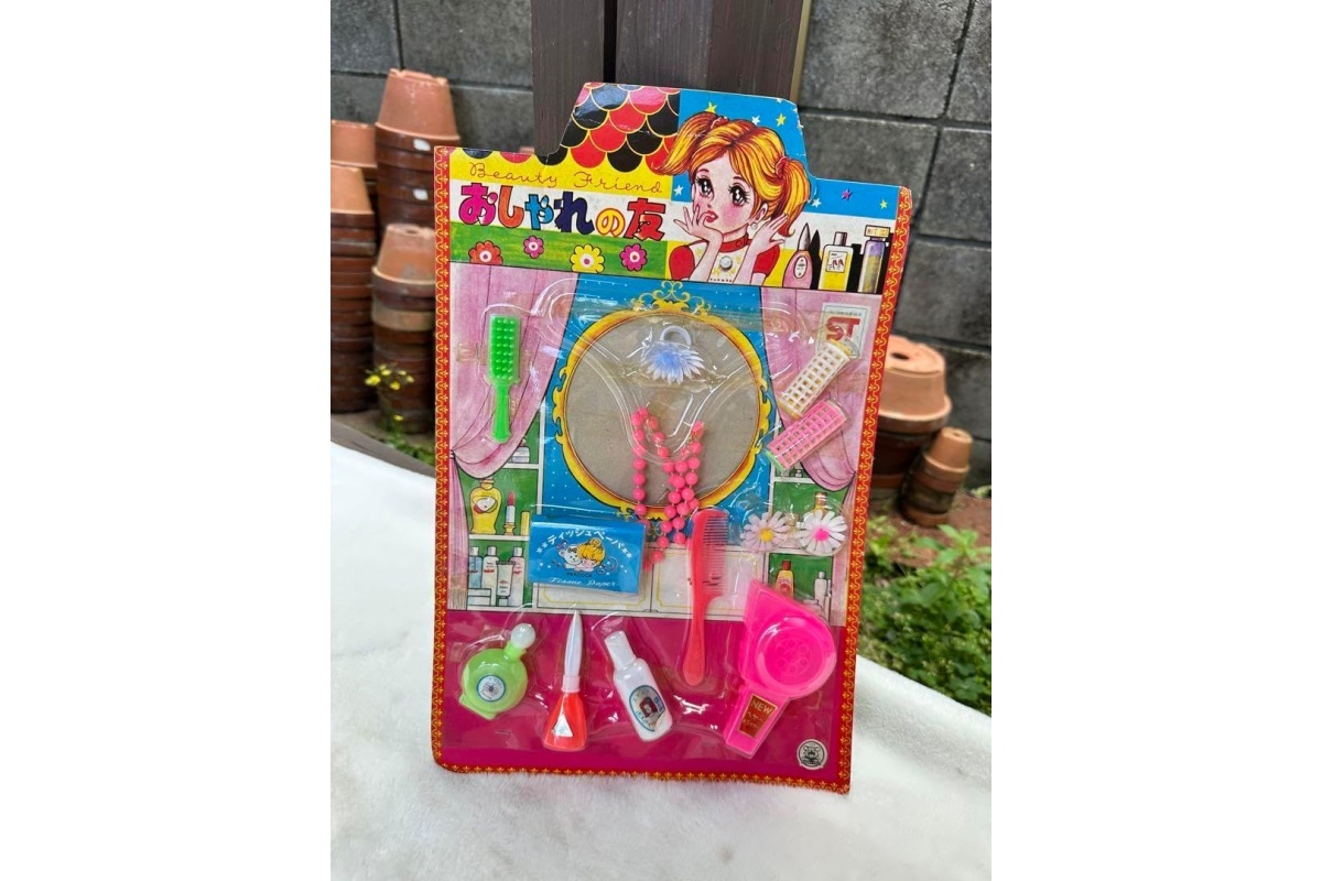 こちらは昭和の駄菓子屋で女の子たちに人気だった、おしゃれ遊びセット「おしゃれの友」です。