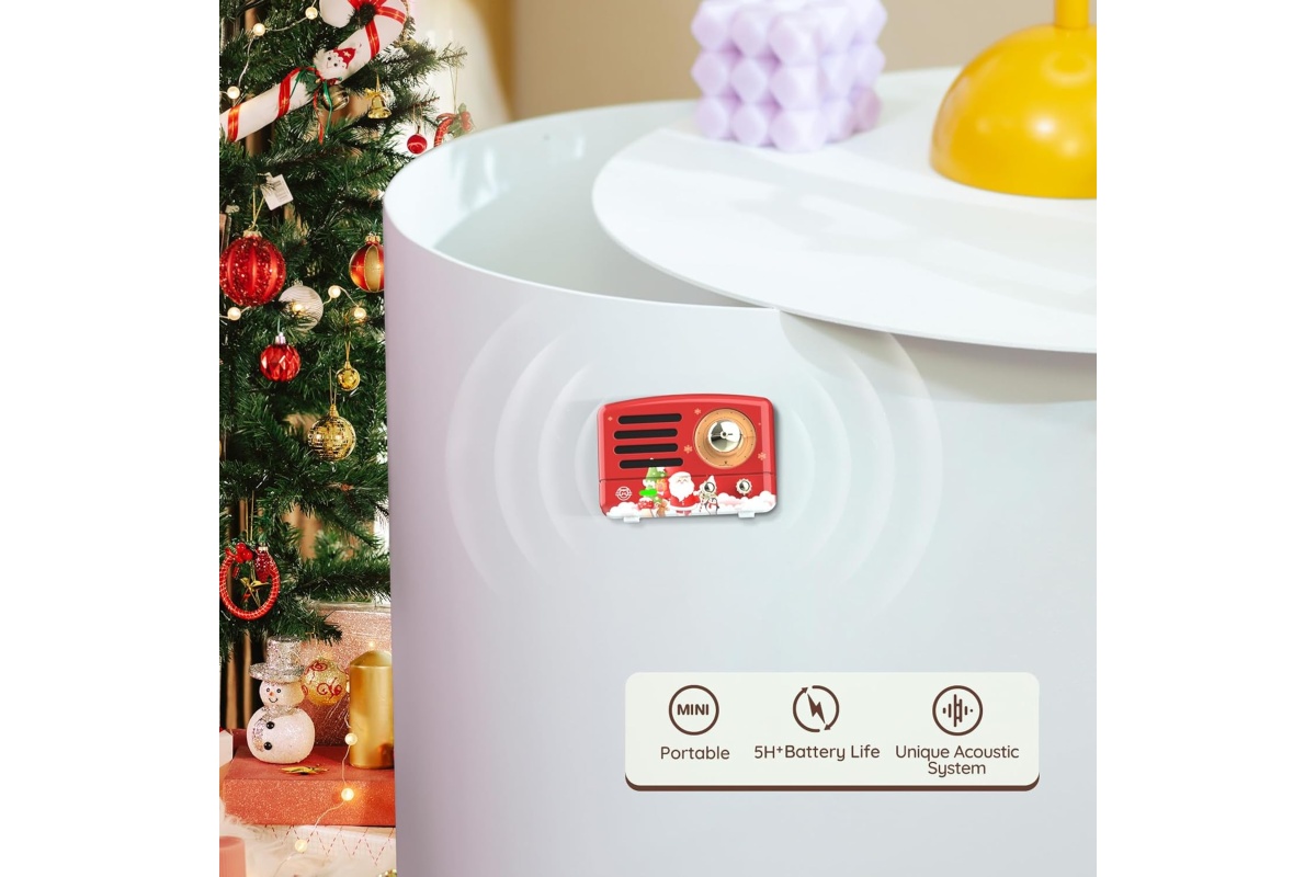 キッチンで音楽を流したり、ツリーのそばに飾ったりと、冬のインテリアにぴったりの小さな音楽パートナーです。